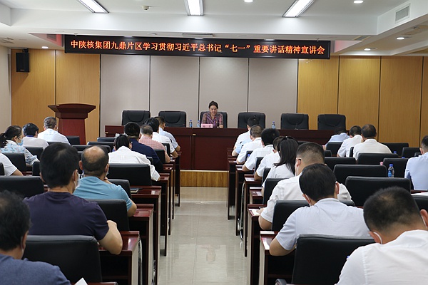 8月3日,中陜核集團公司學習貫徹習近平總書記“七一”重要講話精神宣講團第七宣講組到九鼎片區(qū)進行宣講。宣講組長集團黨委委員、紀委書記、省監(jiān)委駐集團公司監(jiān)察專員楊霞作宣講報告,宣講組成員集團公司紀委、監(jiān)察專員辦公室綜合室主任趙明學主持會議。二一四大隊、二一八大隊、宜威公司和健康產(chǎn)業(yè)四家單位的領(lǐng)導班子及黨員干部共50余人參會。