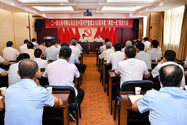 2021年6月28日上午,二一四大隊有限公司在城固基地隆重舉行召開慶祝中國共產黨成立100周年暨“兩優一先”表彰大會,公司黨員干部和黨員代表共50人參加了會議,會議由黨委副書記、總經理司金強主持。