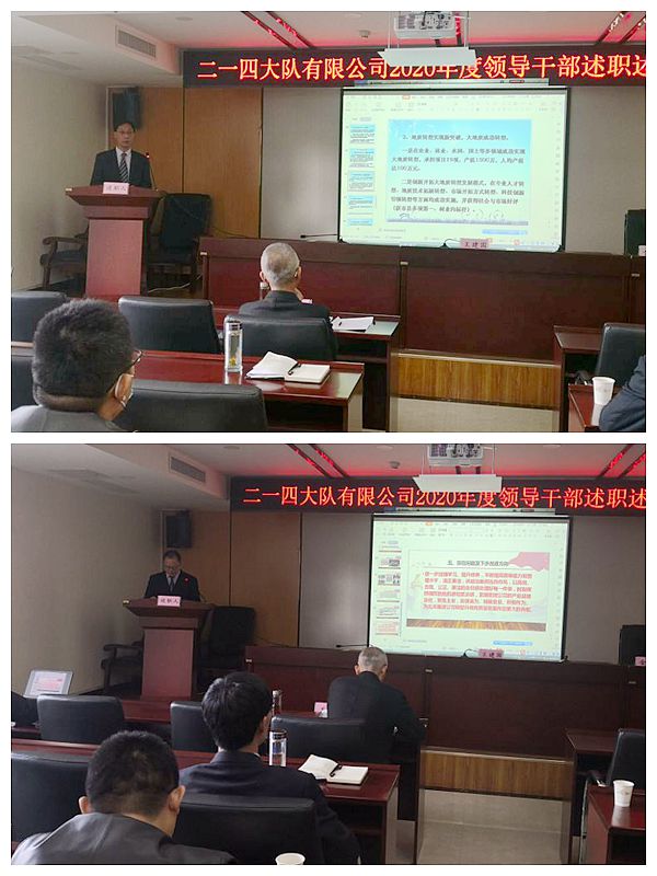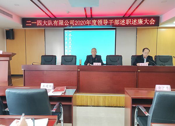 2021年1月12日,集團(tuán)公司黨委副書記王建國(guó)率黨建工作考核組,對(duì)二一四大隊(duì)有限公司2020年黨建工作目標(biāo)任務(wù)完成情況、領(lǐng)導(dǎo)班子及其成員履職進(jìn)行黨建目標(biāo)綜合考核,召開了領(lǐng)導(dǎo)干部述職述廉大會(huì),會(huì)議由集團(tuán)公司黨委工作部部長(zhǎng)金衛(wèi)平主持,公司領(lǐng)導(dǎo)班子成員、中層干部和職工代表共35人參加了會(huì)議。
