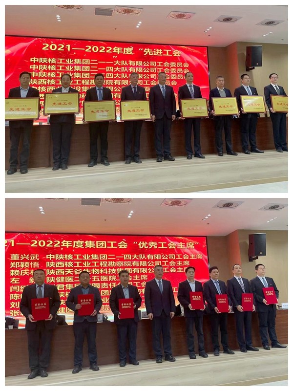 公司工會榮獲2021-2022年度“先進工會”稱號,董興武同志榮獲“優秀工會主席”稱號,惠琦同志榮獲“優秀工會干部”稱號、李輝、王道明同志榮獲“工會積極分子”稱號;無人機航空物探科研創新班組榮獲“示范班組”稱號、地質調查院陜南地質找礦組榮獲“優秀班組”稱號、張源同志榮獲“優秀班組長”稱號。