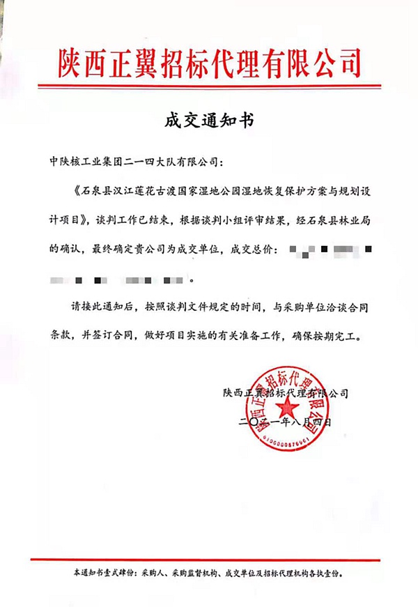 8月4日,經招標代理機構獲悉,公司在《石泉縣漢江蓮花古渡國家濕地公園濕地恢復保護方案與規劃設計項目》競爭性談判中勝出,成功中標。