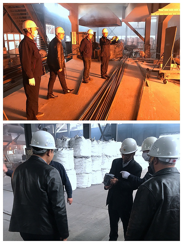 鄧盛波一行在鑫弘礦業副總經理劉學德的陪同下,參觀了公司的生產車間、技術車間、精整車間,從產品的原料、生產在到檢測裝箱貼標包裝都進行了深入了解。參觀過程中,劉學德詳細介紹了整個生產線的生產流程和工藝制作及公司的安全生產、產品質量等情況,領導對廠區生產環境和先進設備表示稱贊,同時對鑫弘礦業的產品質量也表示肯定。