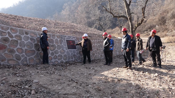 鄧盛波一行到達項目組駐地后,首先到各個治理點上對實施的護坡擋墻、排水溝、覆土等治理工程進行查看、驗收,現場發現問題,提出了整改意見。在交工驗收會上,驗收小組成員認真聽取了項目負責人祝虎林對該項目治理情況的簡要匯報,并對施工資料進行了仔細核查。