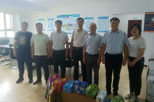 鄧盛波一行來(lái)到新疆項(xiàng)目部,首先慰問(wèn)了野外一線工作人員,并為一線職工送去了“清涼大禮包”。