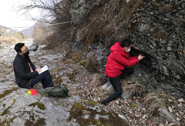 雖然已經三月,秦嶺深山依舊寒冷,早晨的深山晨霧朦朧,也阻擋不了項目組成員奮進的腳步,水文組實施測水溫、測流速、測流量、調查泉眼;地質組實施看巖性、測產狀、追構造、做記錄。在項目組成員的積極努力下,各技術組方案的不斷協調優化,為下步物探組工作的進行奠定了可靠的技術基礎。